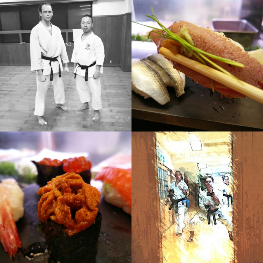 Well, I’ve been back a few weeks now and of course I’m pumped to be back in the honbu dojo, as well as back to work with my Tokyo team and back to seeing – when time permits – the other misfits and fugitives that I call my friends in Tokyo. But right now, after a good and sweaty 2 hours in the JKS Honbu Dojo, I’m most pleased to be back at my favourite sushi bar! It’s also a great place to whip out my phone and have another go at this blog I’ve been promising for so long…